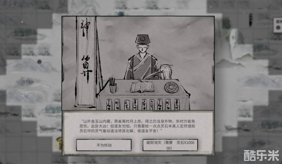 第7个奇遇黑云翻墨煞盖顶,同样是一个负面奇遇,在触发之后,将会在短时间之内减少自身10%的攻击和10点幸运值。第8个奇遇山外金玉山内藏,这是最后一个奇遇,同样也是负面奇遇,在触发之后背包中的干粮会不翼而飞,同时还会损失一些灵石。