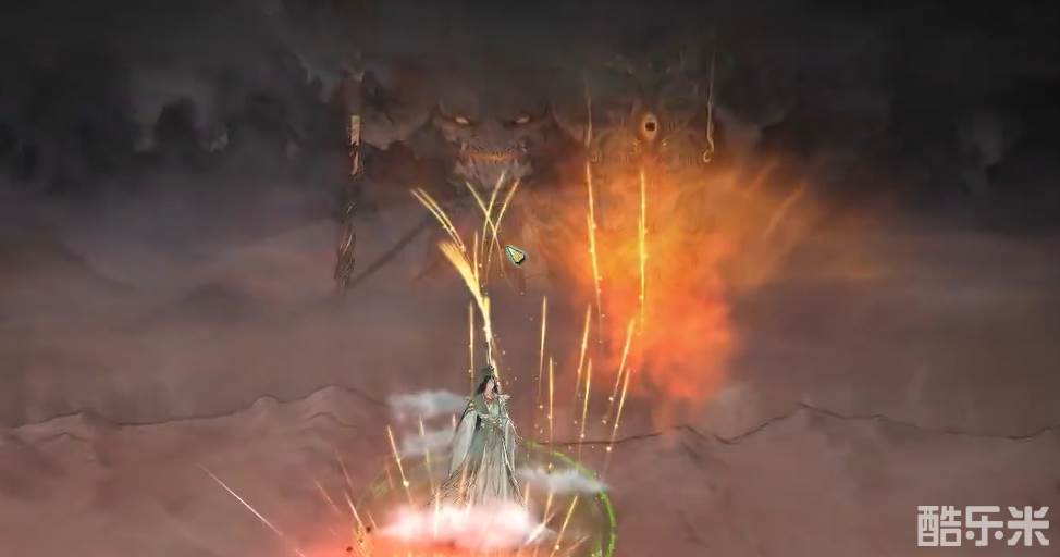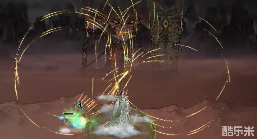 战斗一开始,你的主要任务是活下去。刑天的技能杀伤力极强,这里剧情还会有“句芒”这位神仙老哥来助阵。当刑天释放大范围技能时,句芒会开启屏障帮你挡伤害。这时候你要眼疾手快,第一时间躲进屏障内避难。如果贪输出待在外面,那结局只能是原地重开。