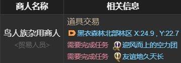 3、都做完后去黑衣森林北部林区(24.9.22.7)找【鸟人族杂用商人】花费25000金币购买【小小迪兹尔】。