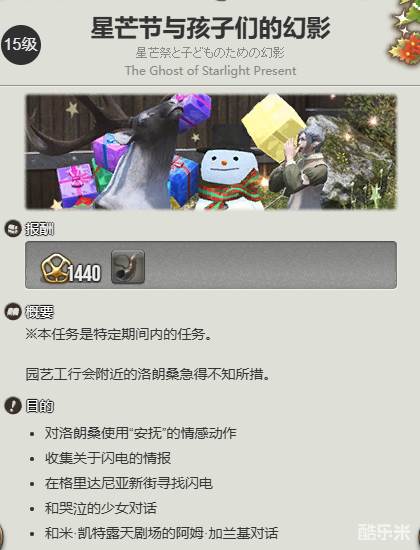 1、首先玩家需要将自己提升到15级,随货玩家就可以在星芒节的时候,前往格里达尼亚旧街开启【星芒节与孩子们的幻影】这个任务了。