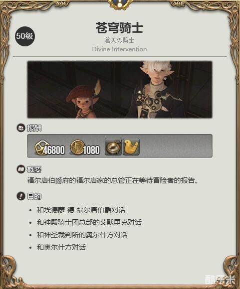 1、玩家需要等级达到50级去找【福尔唐家的总管】开启任务【苍穹骑士】;