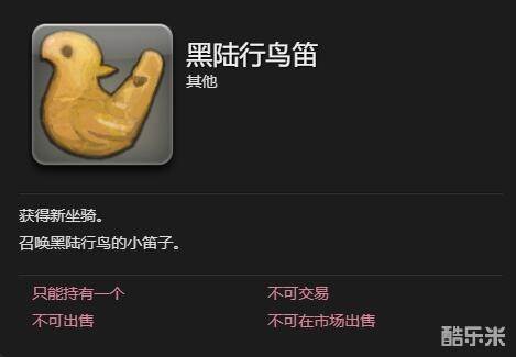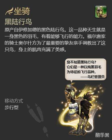 4、使用该道具即可获得步行型坐骑【黑陆行鸟】。