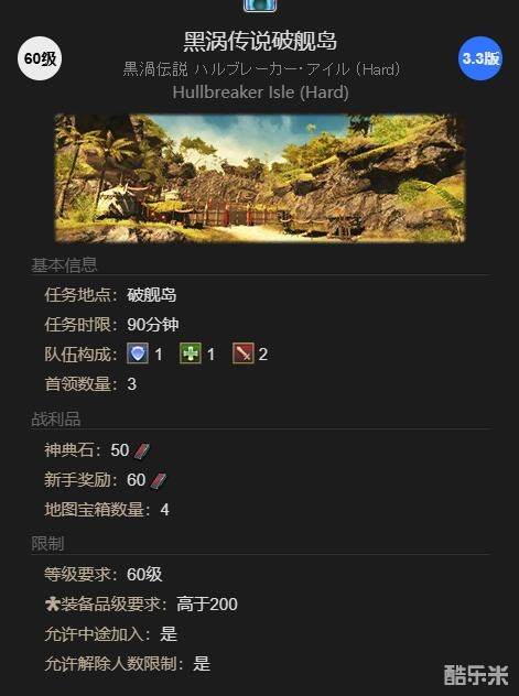 1、先完成60级任务【惊涛骇浪破舰岛】开启副本【黑涡传说破舰岛】;