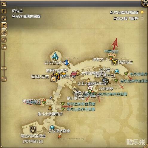 1、大家可以选择前往格里达尼亚新街 X:12.4 , Y:12.1、利姆萨·罗敏萨下层甲板 X:9.4 , Y:11.6或者乌尔达哈现世回廊 X:9.6 , Y:9.1.