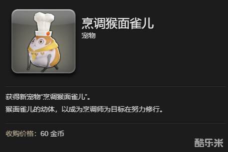最终幻想14烹调猴面雀儿是烹调师的助手,戴着一顶厨师帽。有玩家不知道烹调猴面雀儿怎么获得?它可以通过稀少外典神典石兑换获得,也可以在库啵好运道中抽奖获得,下面和酷乐米小编一起来看看吧