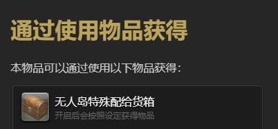 通过开启【无人岛特殊配给货箱】概率获得。