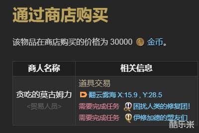 在商人贪吃的莫古姆力处花费30000金币来进行购买。