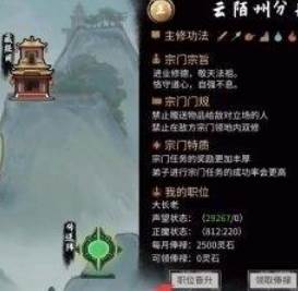 1、先来到自己当前的宗门点进去然后找到右边的宗门详情;