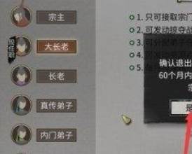 4、玩家退出后60个月内不可重新加入此宗门并清空宗门贡献。
