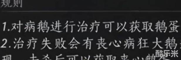 目的是让大鹅发狂,开始以后直接右上角放弃治疗,往河里跑去。