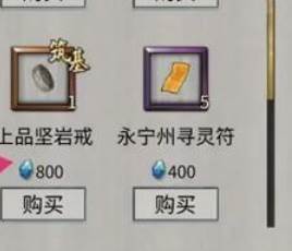 答:前往坊市选择购买,找到商品坚岩戒,花费800灵石即可购买。