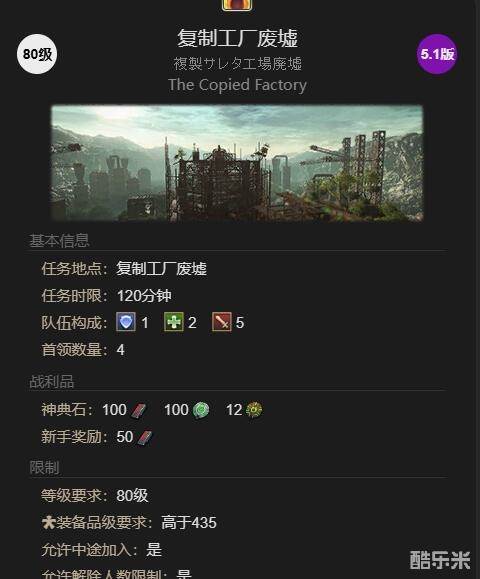 2、任务完成后才能开启对应的副本【复制工厂废墟】;
