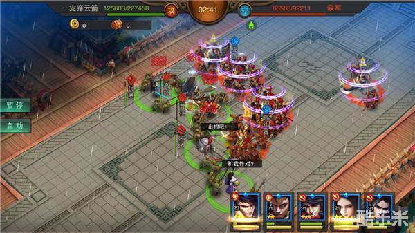 每个武将都有自己的专属技能,有些是强力的单体攻击,有些是群体攻击+控制,还有的是BUFF,我们要根据敌方情况进行适宜的阵容搭配。在交战的过程中,玩家可以实时控制武将技能的释放时机,以达到最佳的作战效果。出战武将之间的技能搭配也很关键,互相配合默契才能百战百胜。战场中还会出现一些随机事件,我们可以控制部队集火攻击某一重点打击目标,或者抢占随机道具,活得额外战斗加成。