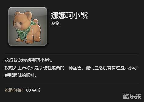 娜娜珂小熊是最终幻想14当中的一个宠物,不少玩家不清楚ff14娜娜珂小熊宠物怎么获得,玩家可以开箱子、制作获得,下面和酷乐米小编一起来看看吧