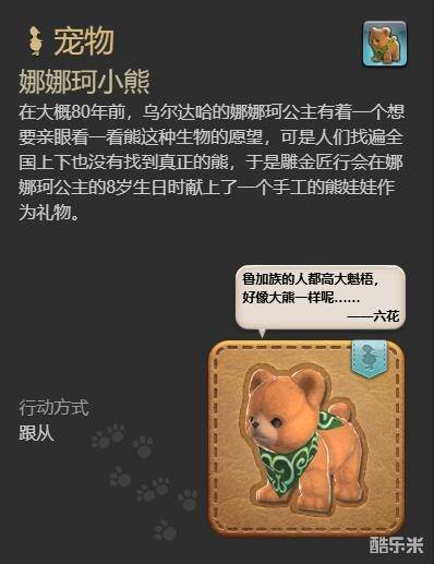《最终幻想14》娜娜珂小熊宠物获得方法: