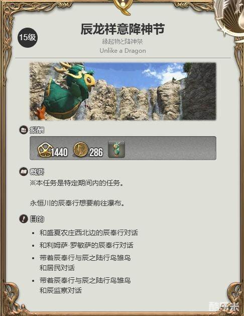 2、然后找到辰奉行触发【辰龙祥意降神节】任务完成获得。