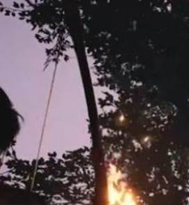 7、走到图中位置,树上有一个蜂巢。