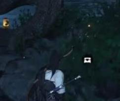 具体是在这个任务河边有这棵树的边上,玩家可以先开启宝箱后,来到右边的石堆上开启这个任务。