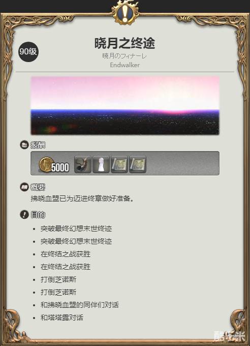 2、当战斗精英和魔法导师(除设限特职) 90级时,接取晓月之终途任务。