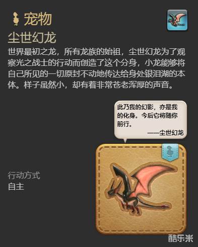 最终幻想14尘世幻龙宠物是由尘世幻龙创造出来的分身,那么尘世幻龙宠物怎么获得?我们要做完前往密约之塔任务才能获取。下面和酷乐米小编一起来看看吧