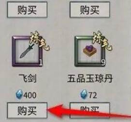 2、在购买商品栏下滑,找到飞剑道具进行购买;