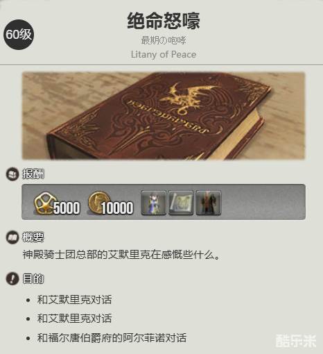 1、玩家需要将自己的等级提升到60级,接着前往伊修加德基础层,找到艾默里克接受【绝命怒嚎】这个任务。
