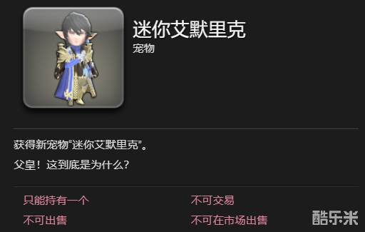 迷你艾默里克是一个一艾默里克为原型的宠物,那么在ff14中要怎么样才可以获得这个宠物呢,玩家完成任务【绝命怒嚎】之后就可以直接获得这个宠物,下面和酷乐米小编一起来看看吧