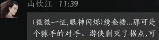 玩家:背后的势力是绣金楼,据点已经被我剿灭。