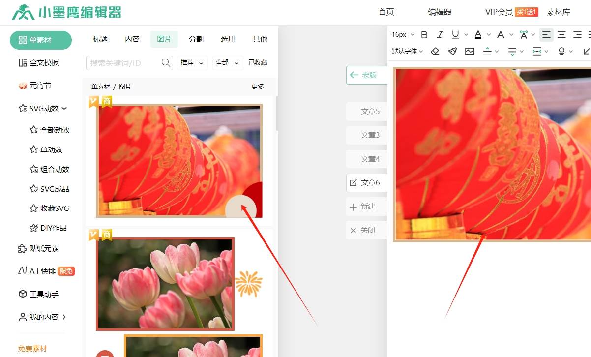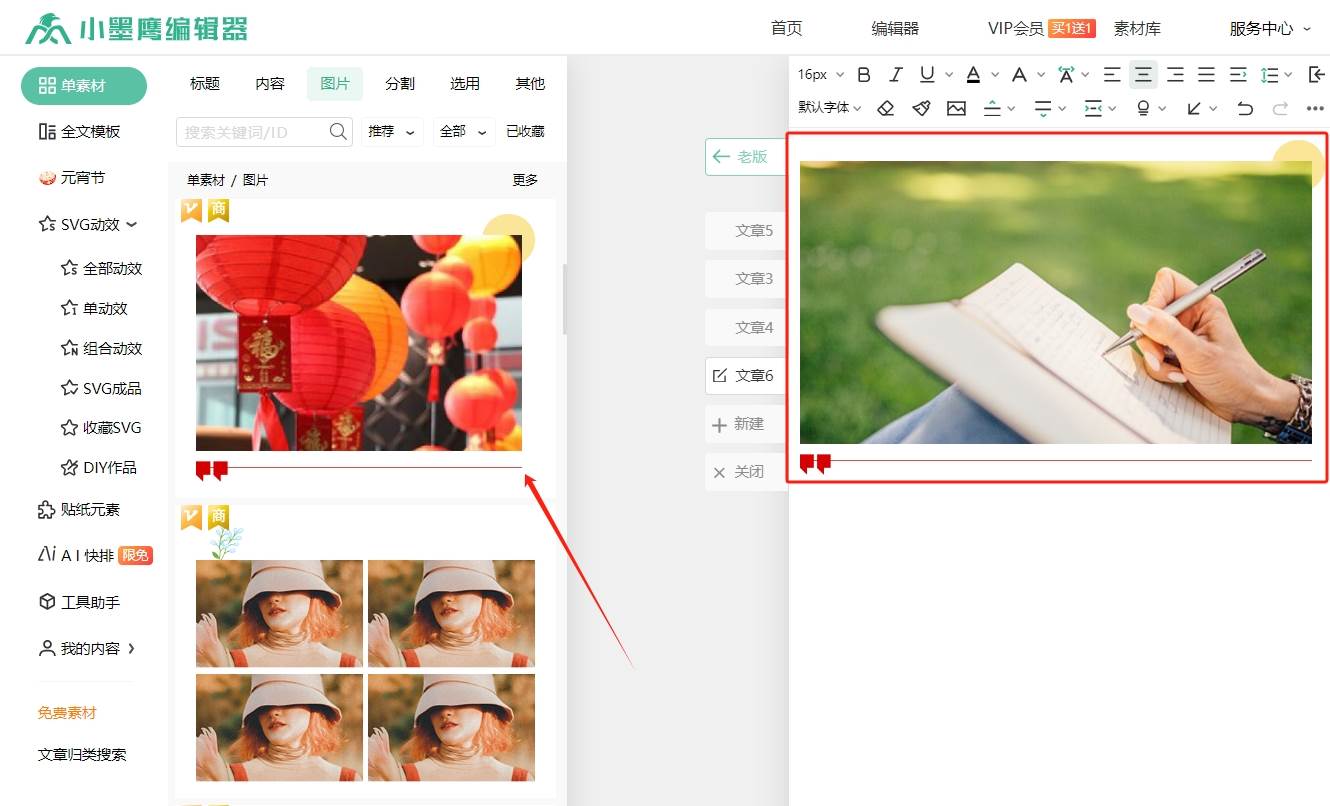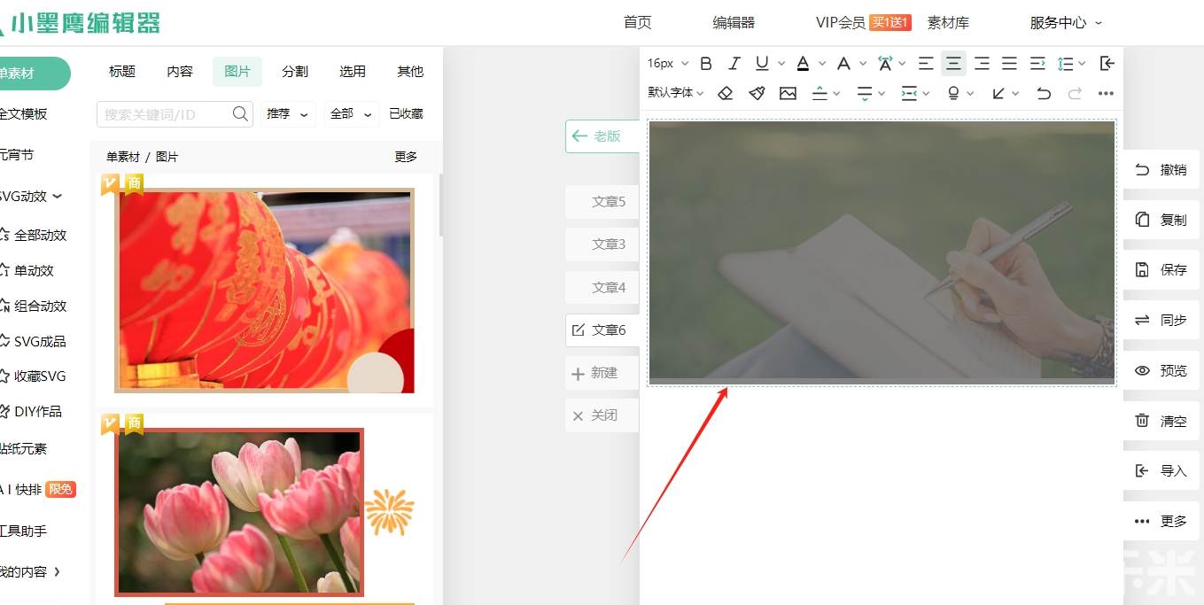 今天我要给大家分享一个我在编辑过程中经常使用的小技巧——替换素材中的图片。我们这里以小墨鹰编辑器为例。