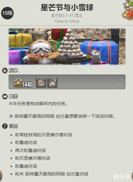 2、随后和他对话完成任务【星芒节和小雪球】,就可以获得这个宠物。
