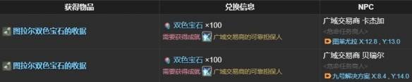 1、首先完成成就【广域交易商的可靠担保人】然后准备好【双色宝石】;