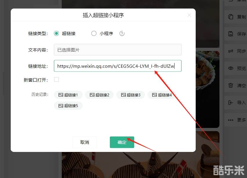 然后填写刚刚复制的文章链接