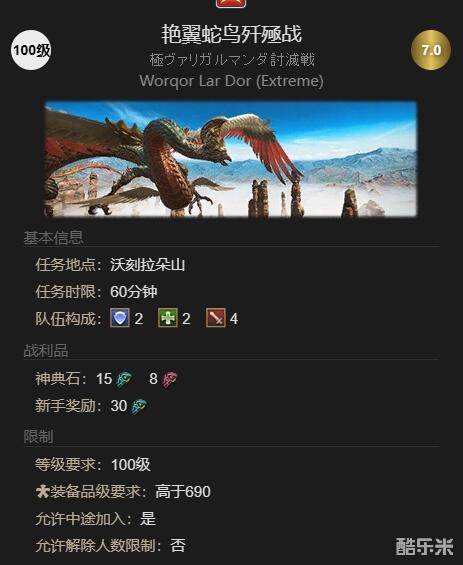 1、完成前置任务【在图拉尔中心吟诗之人】后才可以挑战【艳翼蛇鸟歼殛战】;