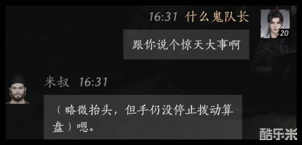 燕云十六声米叔好感度对话怎么选?燕云十六声里面很多人都想要米叔的好感度能够提升很多,那么下面和酷乐米小编一起来看看吧