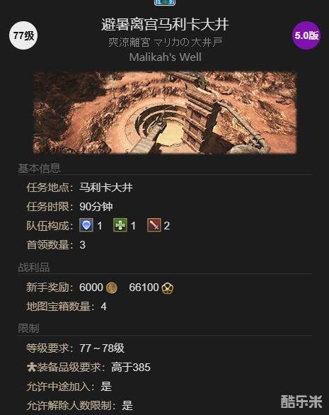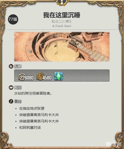1、首先需完成77级任务【我在这里沉睡】才能开启副本【避暑离宫马利卡大井】;