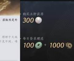 购买月度礼金后,玩家可以累积获得300长鸣珠、3000长鸣玉、30000宝钱,累积登录还可以获得“袅袅之音”卡片。