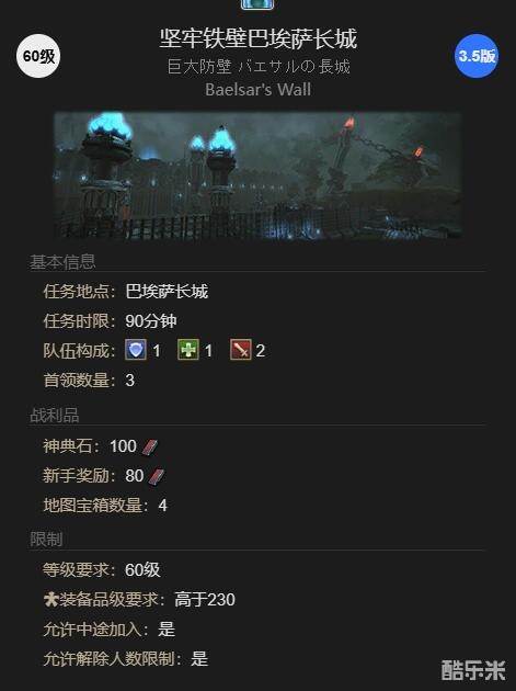 1、先完成60级任务【终结来临】开启副本【险坚牢铁壁巴埃萨长城】;