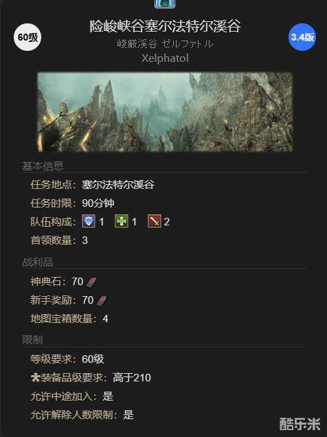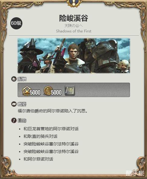 1、先完成60级任务【险峻溪谷】开启副本【险峻峡谷塞尔法特尔溪谷】;