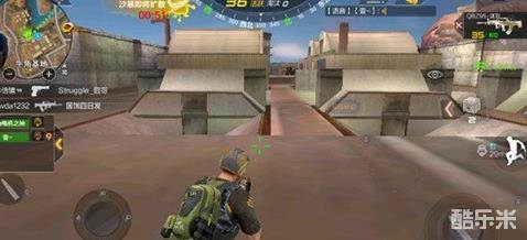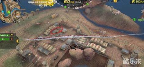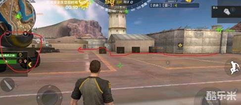 在刚落地时,我们要优先选择只有小门入口的仓库,结合这个特点,我们选择在图一左上角红圈位置降落,这里仓库多为封闭式,建筑门口的路不与整个基地的入口相对,路的两端有导弹发射车充当掩体,被偷袭的可能性较小。而且在红圈所示建筑立面,出现M4A1-4倍镜和AUG红点瞄准的概率很大,喜欢高准度步枪的小伙伴们一定要多加留意。