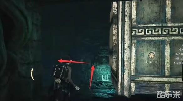 2、看到一个大门,靠近旁边的机关互动即可进去。