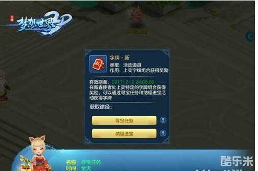 在活动期间,参加新春寻宝任务和纳福进宝活动都有机会获得字牌,当然,也可以找帮友和好友求助,互相交换字牌,增进彼此感情的同时,还能集齐字牌换得好礼!另外,新春寻宝任务中,运气好的还能偶遇五福临门!得到飞翔之心呦!