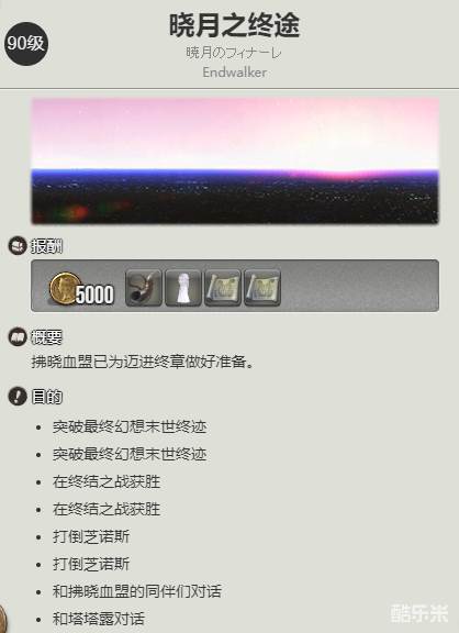 2、随后玩家需要去完成90级的任务【晓月之终途】。