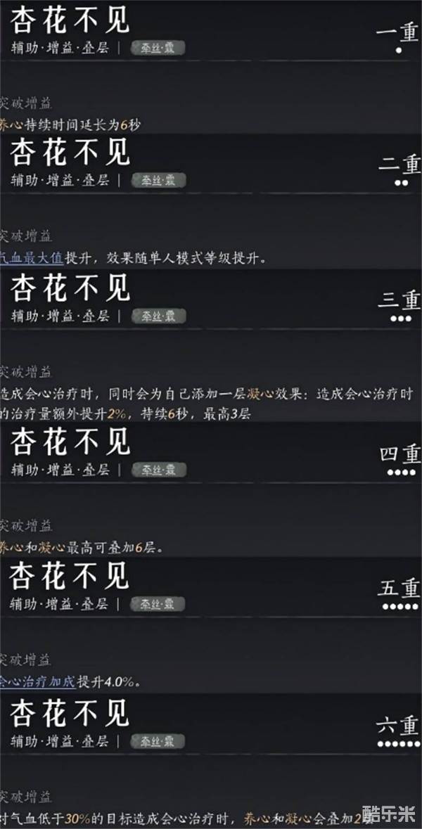 杏花不见:这个心法提升你为坦克提供持续治疗的能力,确保在Boss战中,T能够获得足够的血量恢复。