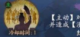伏兵四起:【主动】冷却时间1,对敌军单体造成兵刃伤害及谋略伤害,并造成【溃逃】效果。