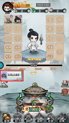 2、一段介绍之后,开启炼炉,将得到的装备给角色穿上