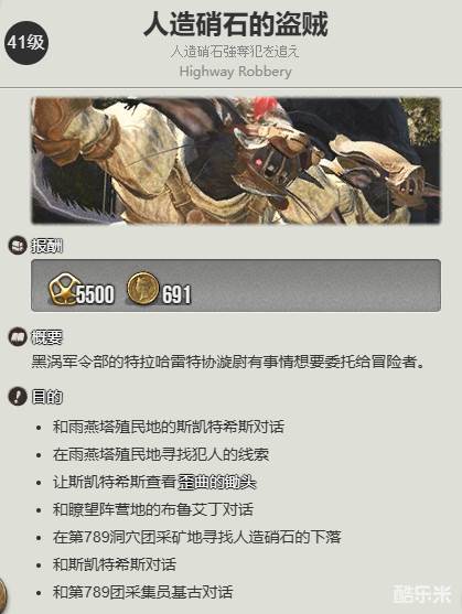 4、随后玩家就可以接受地灵族的蛮族任务人造硝石的盗贼了。