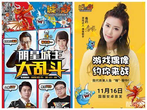 《城与龙》在国内上线期,针对手游的年轻用户群体,做了全平台的推广。iOS首发后,人皇SKY、电竞教父海涛等名人也一起加入到《城与龙》的攻城行列,直播收看人数直逼百万。此外,知名歌手Mars毒药也加盟到《城与龙》中,将游戏个性张扬、造型百变多样的的独特形象深入年轻玩家的心中。