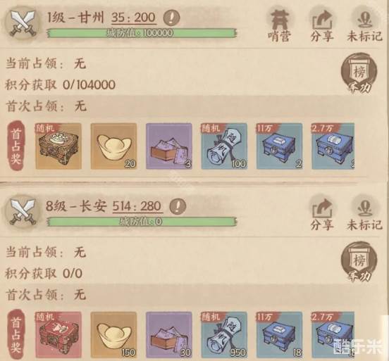4、城池进攻为积分制度,有多个州争夺同一城池,积分最多的州获取占领权