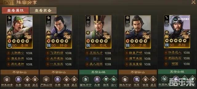 后起之秀羁绊,从蜀国转姜维过来,姜维、钟会、羊祜三个人凑后起之秀羁绊,第四第五人选择于禁和荀彧。荀彧王佐之才给姜维,同时带谈心给姜维提升属性,美人连环是献图PLUS版,羊祜再补一部分的恢复。这里钟会也可以换邓艾,当另一个输出。
