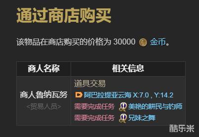 2、接着玩家需要前往阿巴拉提亚云海的西风岛找到商人鲁纳瓦努这个商人,花费30000金币购买即可。